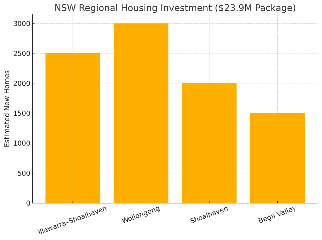 The NSW Government has unveiled a $23.9 million package to back housing in regional NSW. As buyers’ agents, we see this as a signal that new homes are coming to areas like Illawarra–Shoalhaven, Wollongong, Shoalhaven and Bega Valley. The funds support two key programs – the Regional Housing Strategic Planning Fund and the Low-Cost Loans Initiative – to help local councils build roads, parks, drainage and other infrastructure for about 9,000 new homes. This move is designed to ease the housing shortage and boost growth outside Sydney.
