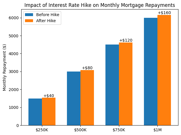 - Tighter borrowing power: Every rate rise reduces loan capacity. At D’MANSHA, we always crunch the numbers first. A $600K mortgage might cost about $90 extra per month after this hike. That’s why we tell clients to stay within their budget.